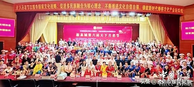 参加活动的连云港市孔孑学会代表们高兴地登上舞台,并和来自全国各地出席艺术节的嘉宾、全国108家保君书院代表、324家婚俗体验区负责人及全体演员合影留念。